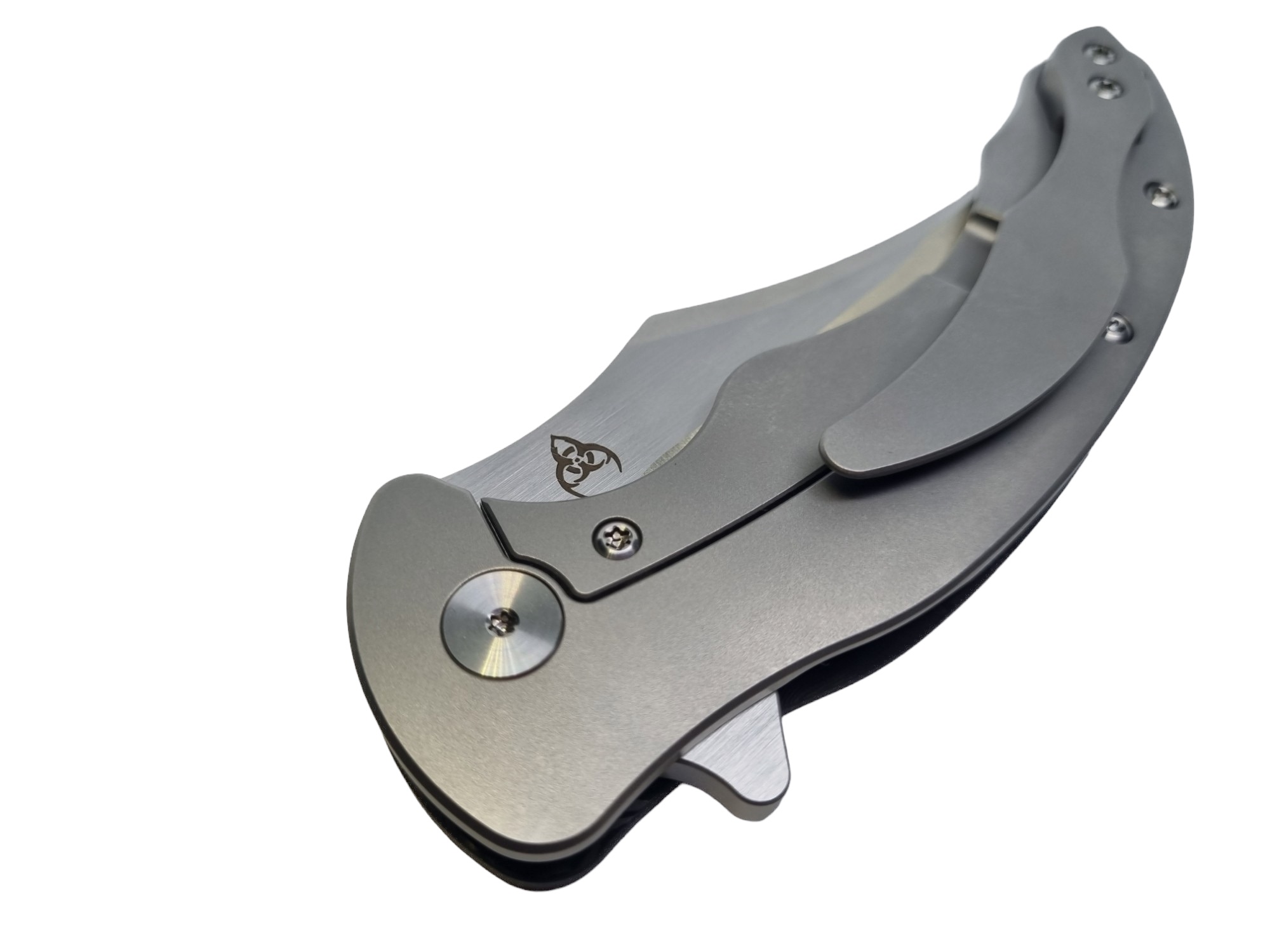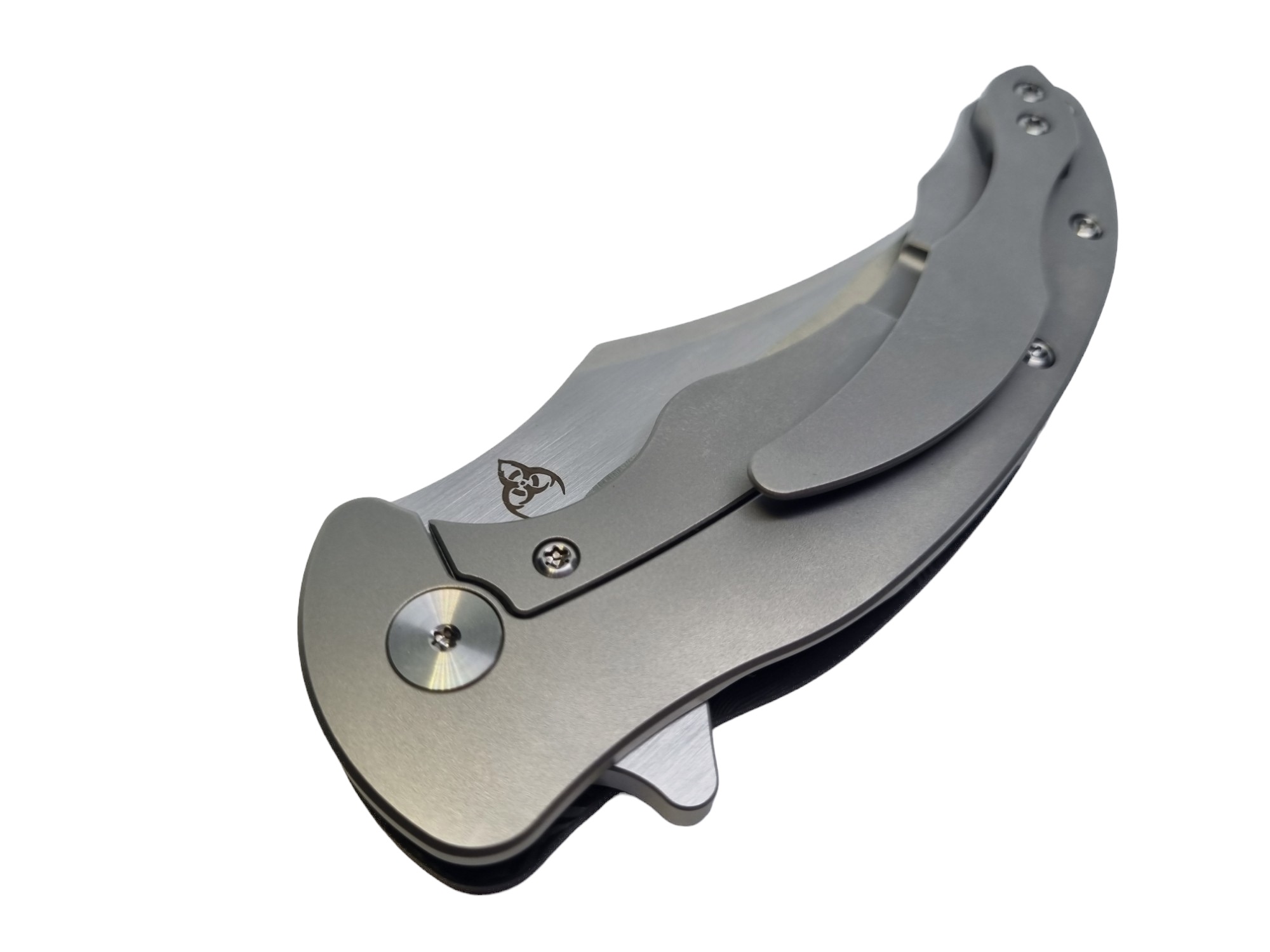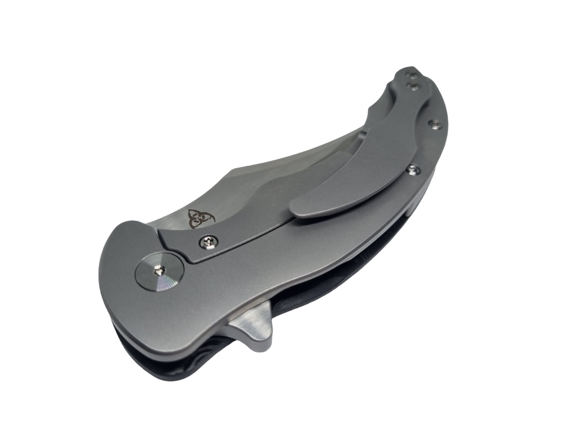 Vorne: Edles FatCarbon – leicht, widerstandsfähig, mit dieser typischen wilden Maserung. Hinten: Klares Titan. Ein Materialmix, der knallt – optisch wie technisch. Und als Bonus? Der geschwungene Clip in Tip-up Position. Nicht nur ein stylisches Extra, sondern auch sicher und allzeit bereit.