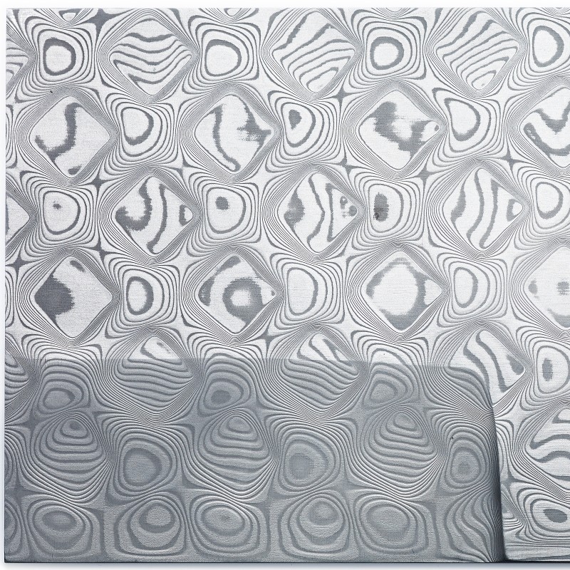 Diese flachen Damastplatten mit Pyramidenmuster bieten eine außergewöhnliche Kombination aus Schönheit und Stärke. Mit 120 Lagen rostfreiem DSC® verfügt jede Lage über SuperClean-Schweißnähte für optimale strukturelle Integrität. Seine sehr feine Körnung garantiert eine glatte und hochwertige Oberfläche. Diese Platten eignen sich perfekt für den Kontakt mit Lebensmitteln und bieten die Möglichkeit einer optionalen Hochhärtung bis zu 62 HRC. Sie sind als Zentimeterware erhältlich und stellen eine erstklassige Wahl für eine Vielzahl von Anwendungen dar.