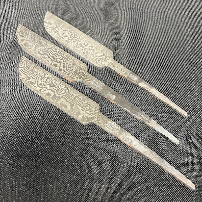 Die Rohblätter Wildes Damaszenermuster (Kohlenstoff) sind außergewöhnliche Stücke von hoher Qualität, hergestellt aus Kohlenstoff-DSC (nicht rostfrei) mit einem charakteristischen Muster des Wilden Damaszenermusters. Mit 160 Schichten bieten diese Blätter SuperClean-Lagenschweißungen und eine sehr feine Körnung, was einen zuverlässigen Herstellungsprozess und eine hohe Schneidfähigkeit gewährleistet. Sie bieten die Möglichkeit einer hohen Härtung bis zu 63 HRC. Der Preis ist pro Stück festgelegt.