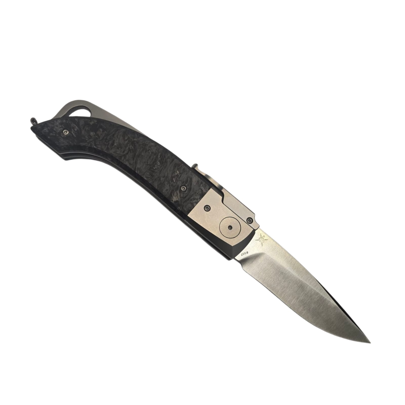Entworfen von Antonio García, bekannt als Forjaman, einem wahren Künstler des Schmiedefeuers. Seine Vision: spanische Handwerkskunst in die Gegenwart holen. Das Ergebnis ist eine Kombination aus klassischem Hebelverschluss, Titan Griffen (Grad 5) und modernen Carbon-Inlays so wie Kristallisiertes Titan, die dem Salamandra seine unverwechselbare Aura verleihen.