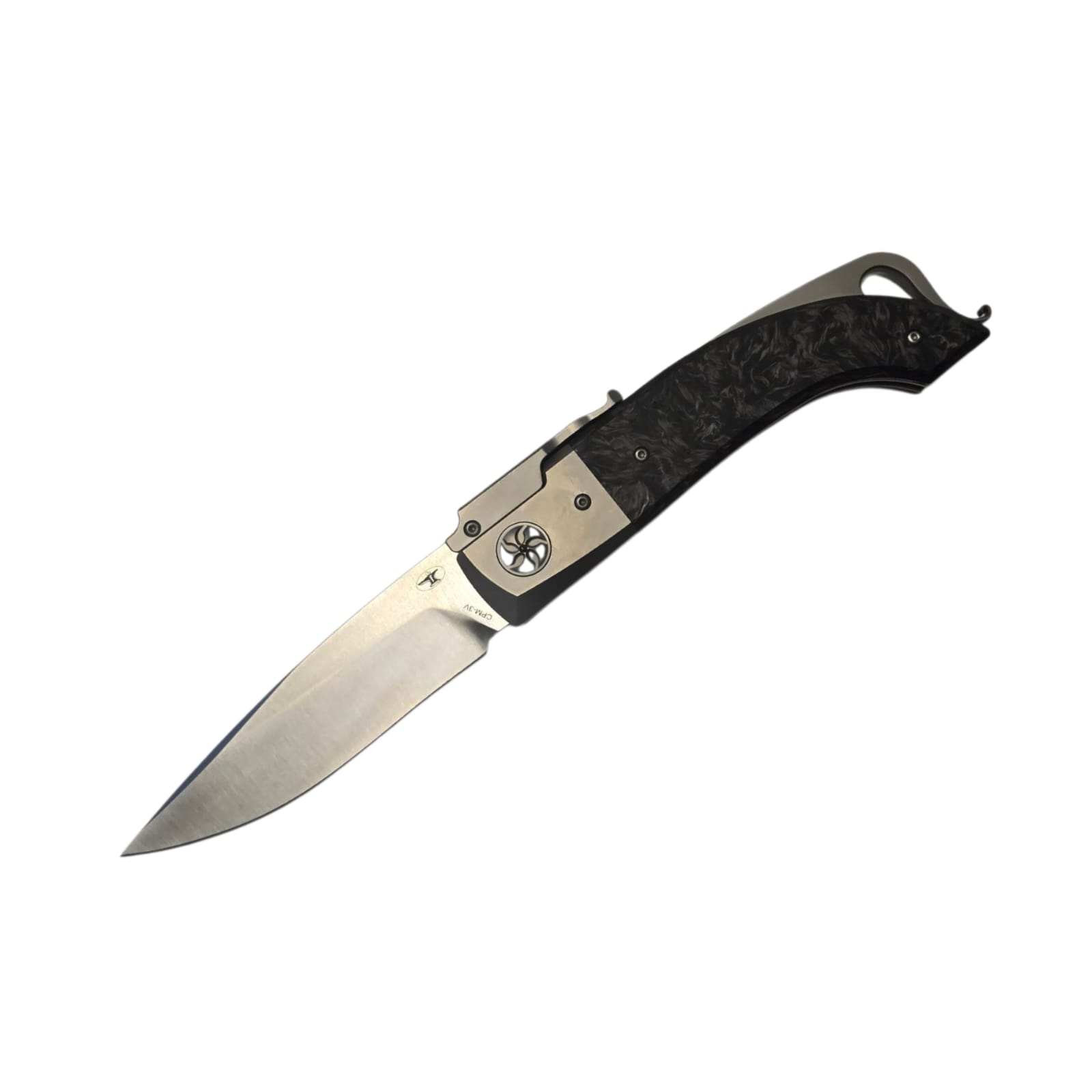Die Klinge aus CPM 3V Stahl bringt pure Stärke und Schneidfreude. Mit 10,5 cm Länge und Satin-Finish verkörpert sie die Balance zwischen Kraft und Raffinesse. Die modifizierte Spear-Point-Form ist nicht nur funktional, sondern auch ein ästhetisches Statement – kompromisslos und stolz, wie die spanische Seele selbst.