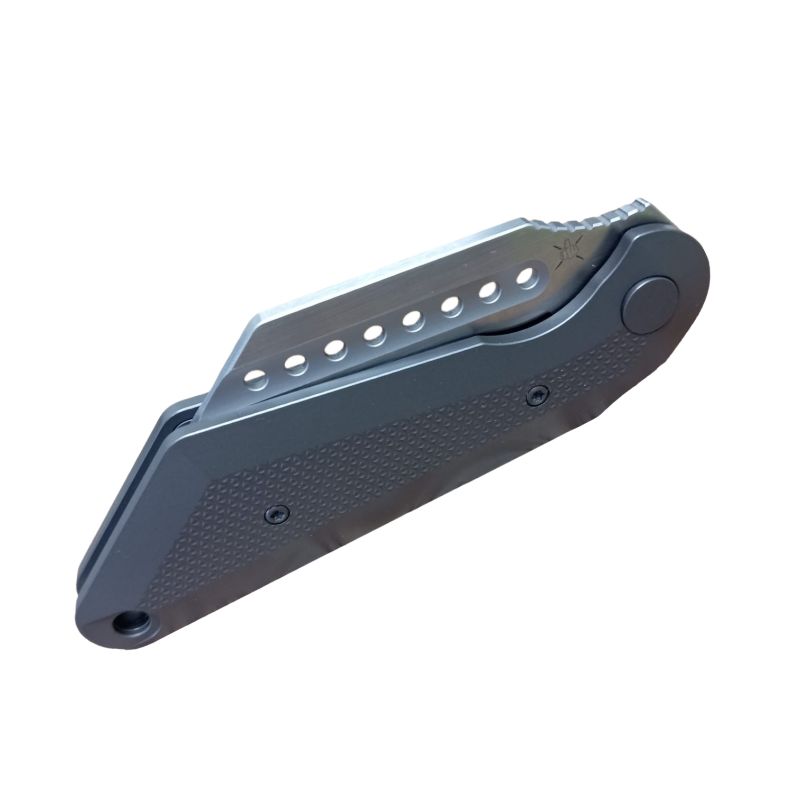 Der Griff des Tibia liegt dank seiner ergonomischen Form perfekt in deiner Hand. Hergestellt aus hochwertigem Titan, verleiht er dem Messer nicht nur Leichtigkeit, sondern auch eine bemerkenswerte Stabilität. Die zusätzliche graue DLC-Beschichtung (Diamond-Like Carbon) sorgt nicht nur für eine herausragende Widerstandsfähigkeit gegen Kratzer und Abnutzung, sondern verleiht dem Messer auch einen besonders coolen, modernen Look.