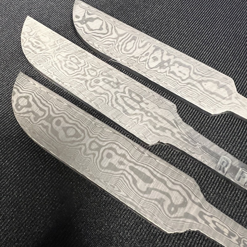 Die Wild Damascus Blades sind aus DSC inox gefertigt, einem hochwertigen Edelstahl, der das unverwechselbare Design des Wild Damascus aufweist. Dieses Produkt zeichnet sich durch SuperClean-Schweißnähte und eine sehr feine Körnung aus, die einen äußerst zuverlässigen Produktionsprozess garantieren. Die Platten bieten eine hohe Kantenfestigkeit und sind für den Kontakt mit Lebensmitteln geeignet, wodurch sie sich für eine Vielzahl von Anwendungen eignen. Außerdem ist die Verformung nach der Wärmebehandlung unkritisch, und sie ermöglichen einen hohen Härtegrad, der bis zu 62 HRC reicht. Der Preis wird pro Stück berechnet und bietet eine Premium-Option für die anspruchsvollsten Bedürfnisse.