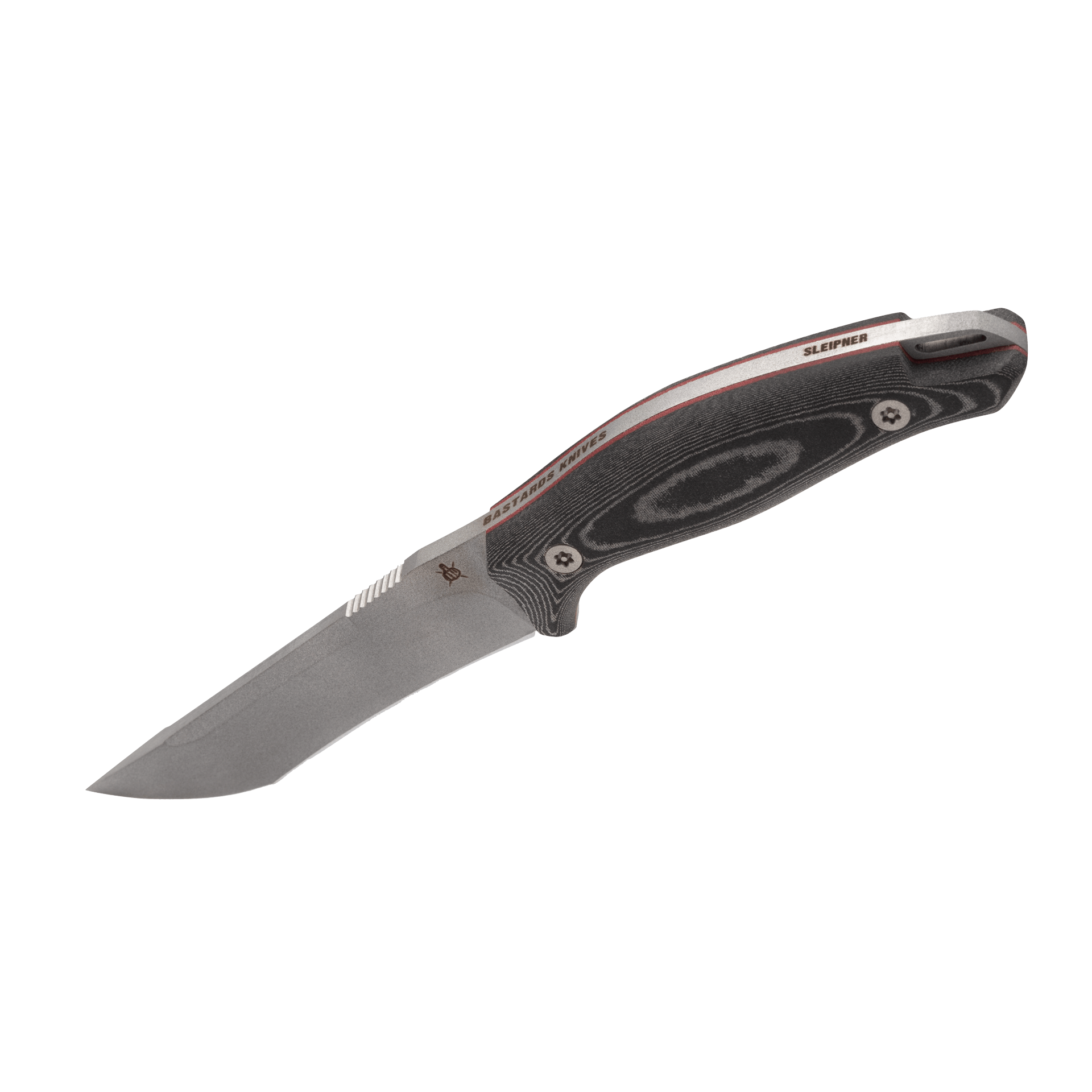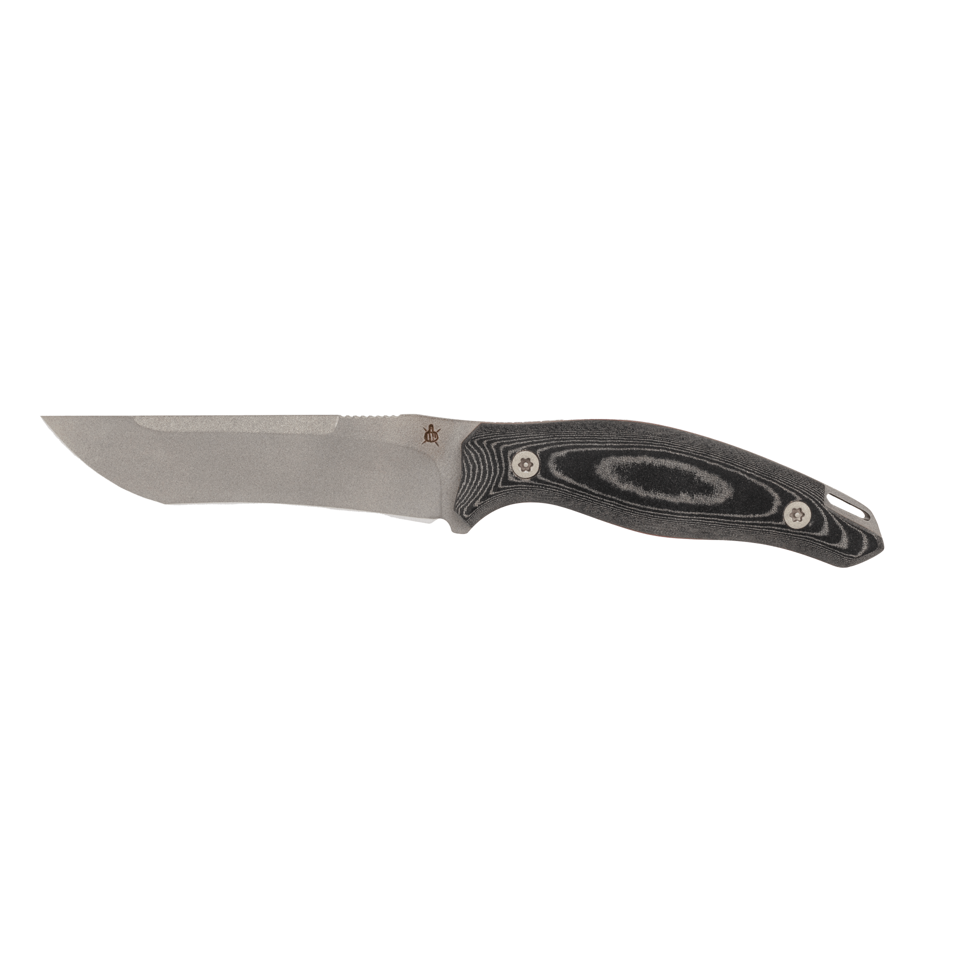 Micarta negra envuelve la espiga completa con robusta elegancia. La superficie ofrece un agarre seguro, incluso cuando está mojada, embarrada o con guantes. Los separadored en color naranja no sólo ponen acentos visuales, sino que también aumentan la visibilidad durante el acceso rápido o en condiciones de iluminación difíciles. La empuñadura se adapta cómodamente a la mano: equilibrada, fuerte y fácil de manejar.