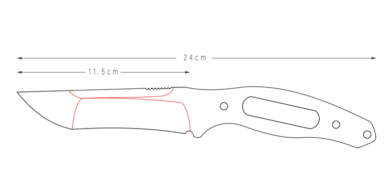 La hoja tanto de 11,5 cm de longitud fabricada en acero Sleipner no se queda a medias. Sus 6 mm de grosor de hoja proporcionan la máxima estabilidad, incluso en las condiciones más duras. Ya sea partiendo madera, haciendo palanca o cortando – el Reaper sigue siendo preciso y fiable. La forma de tanto asegura una fuerte penetración de la punta y un corte controlado en cualquier ángulo.
