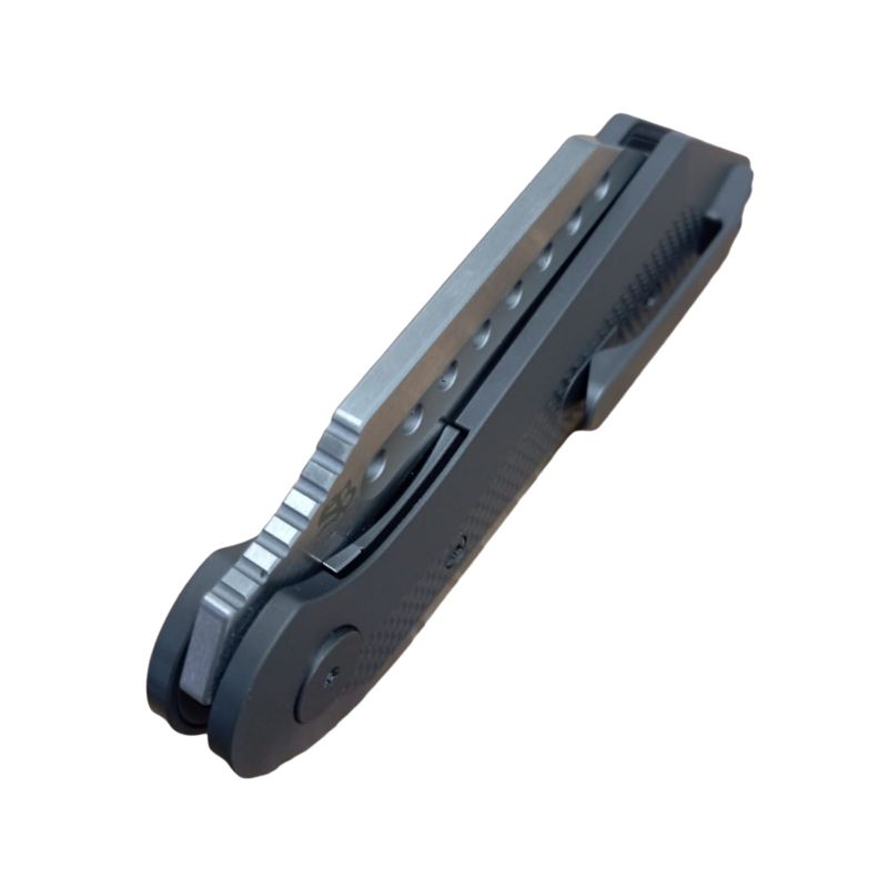 La Tibia está equipada con un práctico flipper que sirve de ayuda para la apertura. Los rodamientos de bolas de la hoja le permiten moverla suavemente hasta su posición. Una vez abierta, la hoja se mantiene en su sitio gracias a un robusto linerlock para que puedas utilizarla sin ninguna duda.