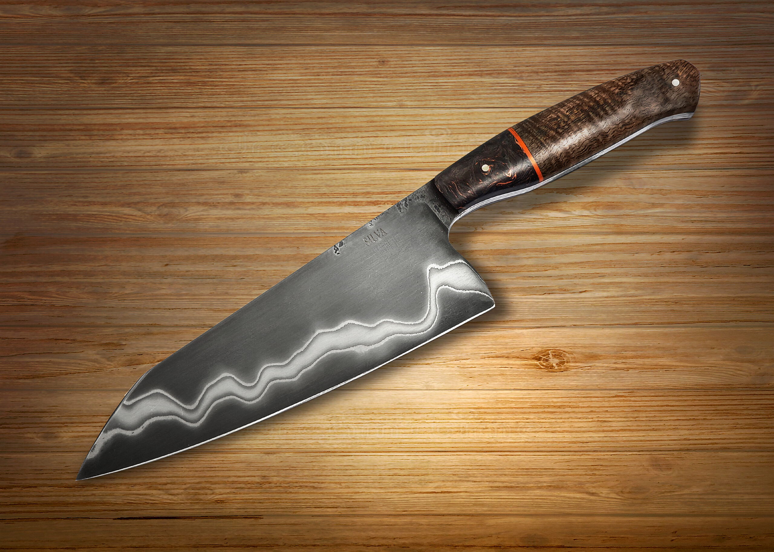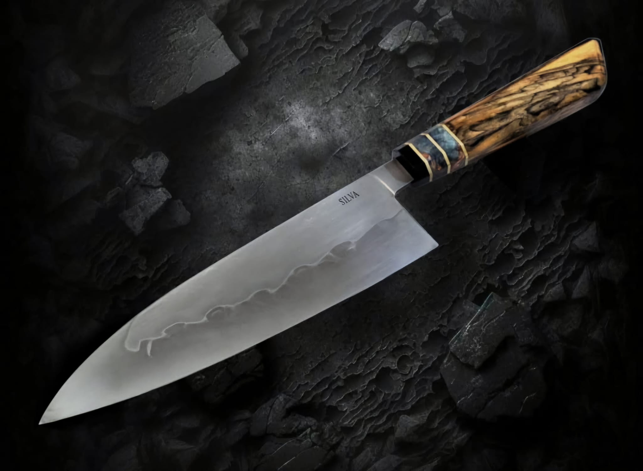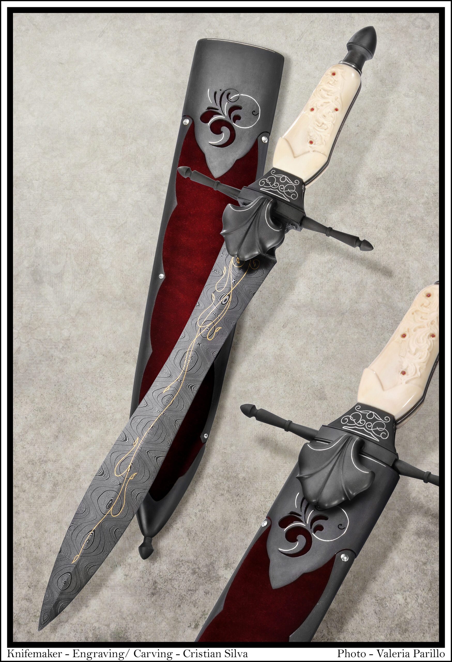 Cada cuchillo firmado por Silva nace de un proceso íntegramente artesanal, marcado por el dominio del acero, el control del fuego y una atención minuciosa al detalle. Sus piezas no se conciben como productos seriados, sino como obras únicas, donde la forma, el equilibrio y la ergonomía dialogan con una narrativa visual propia. En ellas, la utilidad no se opone a la belleza: la sostiene.El uso del scrimshaw, el grabado ornamental y la talla forma parte esencial de su discurso artístico. Estas disciplinas, aplicadas con rigor técnico y criterio estético, no actúan como mero ornamento, sino como elementos narrativos que aportan simbolismo, identidad y profundidad conceptual a cada pieza. El resultado son cuchillos que trascienden su función para convertirse en objetos cargados de memoria, carácter y significado.