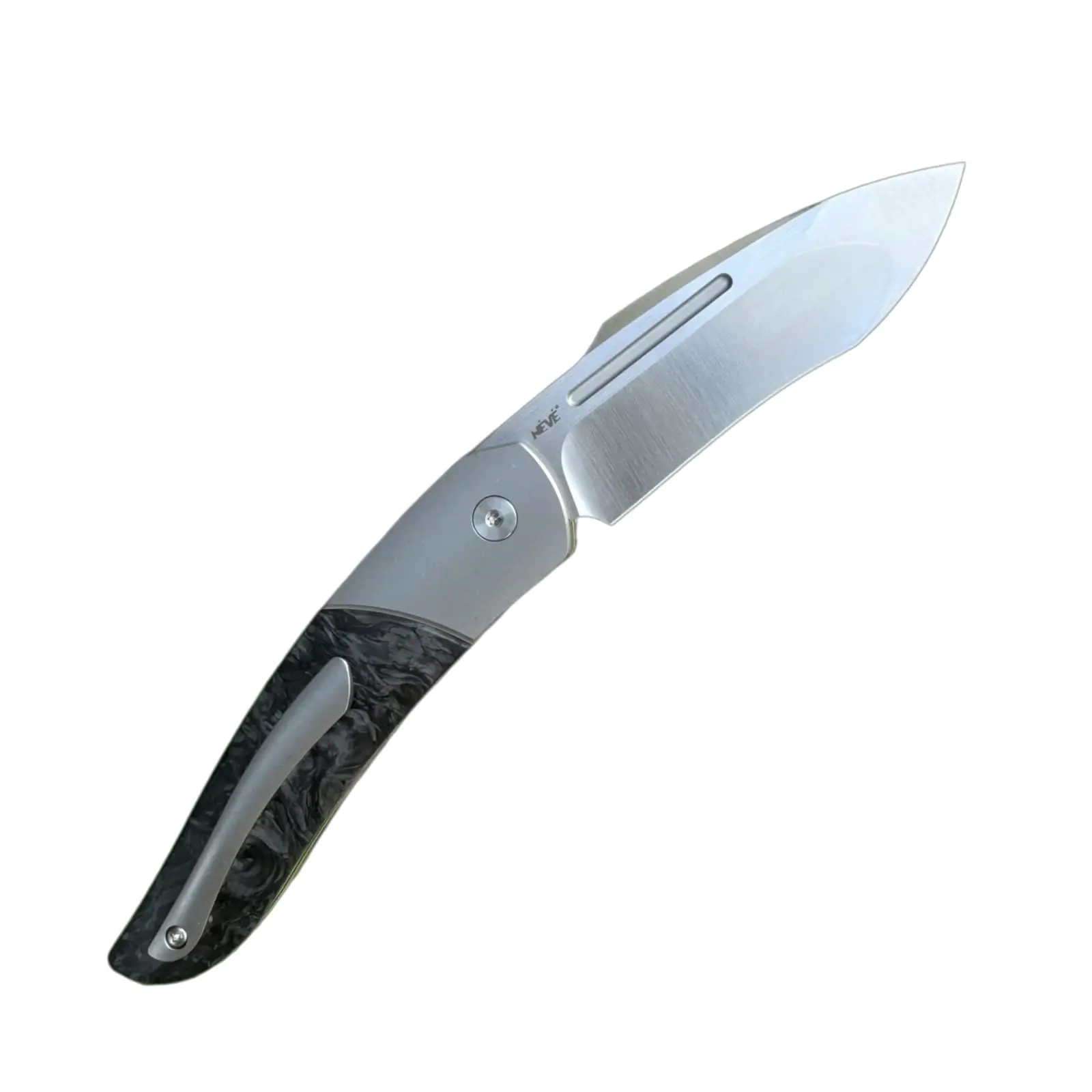 The Alcyon is available in three elegant versions: Full Titanium, Fatcarbon Marbled Gold and Marbled Black. Each version has its very own exclusive character and impresses with its special elegance and outstanding quality. The heart of the knife is the M390 steel blade, which is known for its exceptional sharpness and hardness. With a length of 9 cm and a curved modified spear point shape, the blade offers excellent cutting properties and enables precise work.