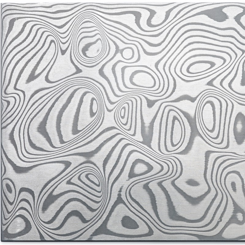 Discover the distinction of our Damascus Plates, made with DSC® inox composite and 120 layers. This design evokes natural beauty with its leopard skin pattern. With SuperClean layered welds, stainless, and very fine grain, these plates offer high edge retention and are suitable for food contact. Furthermore, with non-critical forming after heat treatment and high hardenability up to 62 HRC, they are ideal for a variety of applications.