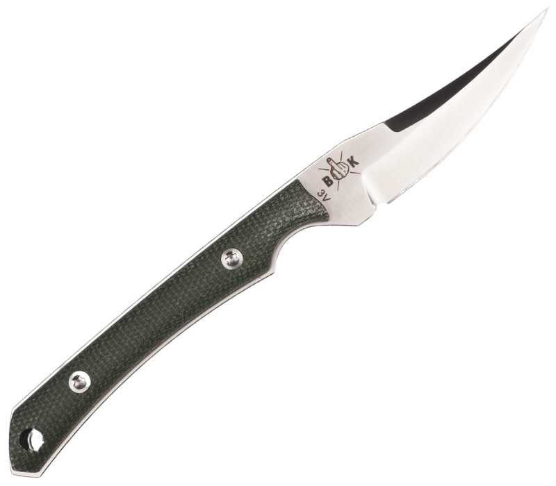 The screwed canvas micarta handle scales are not only functional, but also part of the design philosophy. They offer a secure grip, even when wet, and develop a distinctive patina over time.